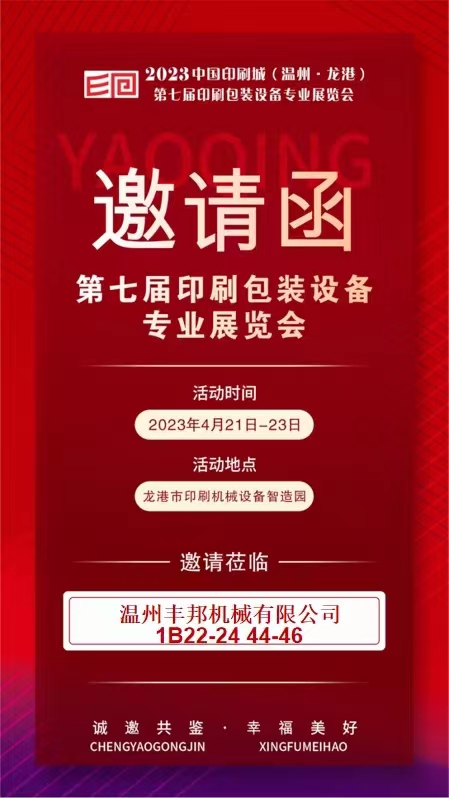溫州豐邦機械有限公司參加2023中國印刷城溫州龍港第七屆印刷包裝設(shè)備專業(yè)展覽會